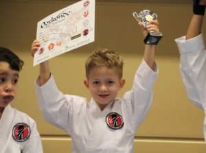 De competitiedag in de Calandhal kende met 300 inschrijvingen een prima gevarieerde bezetting. De jeugdige karateka’s waren afkomstig van karatescholen uit o.a. Amsterdam, Ede, Utrecht, Haarlem, Houten, Zoetermeer, Den-Haag, Veenendaal en Almere. Naast de uitreiking van de vanen werden tien extra prijzen uitgereikt aan kinderen die op een positieve manier opvielen. De jury keek daarbij naar belangrijke waarden binnen de sport, zoals karakter, etiquette, doorzettingsvermogen, zelfbeheersing en eerlijkheid. De volgende zes karateka’s van onze vereniging viel die eer te beurt: